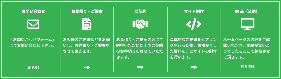 お電話やメールでヒアリングや打合せを行い、デザインとコンテンツのバランスがとれたクオリティの高いホームページを低価格、ワンストップでご提供いたします。